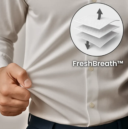 Transpirer est humain, mais cela ne devrait jamais gâcher votre journée. Grâce à leur tissu respirant et extensible, nos chemises réduisent efficacement les traces de transpiration. Contrairement aux tissus classiques, nos fibres innovantes sèchent plus rapidement, évacuent la chaleur et l’humidité, et garantissent une aération optimale. Le résultat : une chemise fraîche, résistante, et toujours impeccable – lavage après lavage.